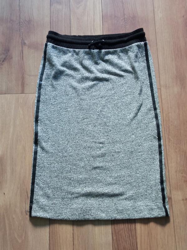 Спортивная юбка из эластичной мягкой ткани. Длина 65, бедра 43, тянется, талия на резинке. Надевалась раз, дефектов и следов носки нет.