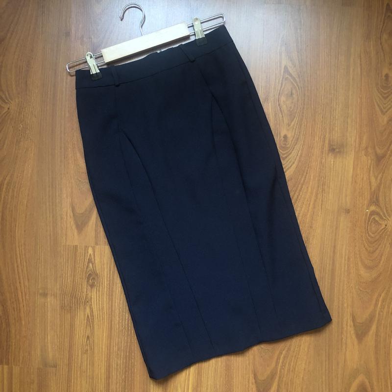 Темно-синя костюмна спідниця по фігурі