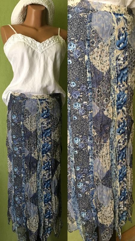 Креативна оригінальна спідниця ( 🇬🇧 Британський бренд ) з різних відрізків тканини ( шифон сітка ) на підкладці , потайна змійка в бічному шві . Гарний підбір кольорів . Низ у вигляді зигзага , надає спідниці родзинку . Розмір вказано 36 Приблизно 46 Виміри ПІТ 36 см ПОБІДИ 46 ( злегка тягнеться ) Довжина 89 см
