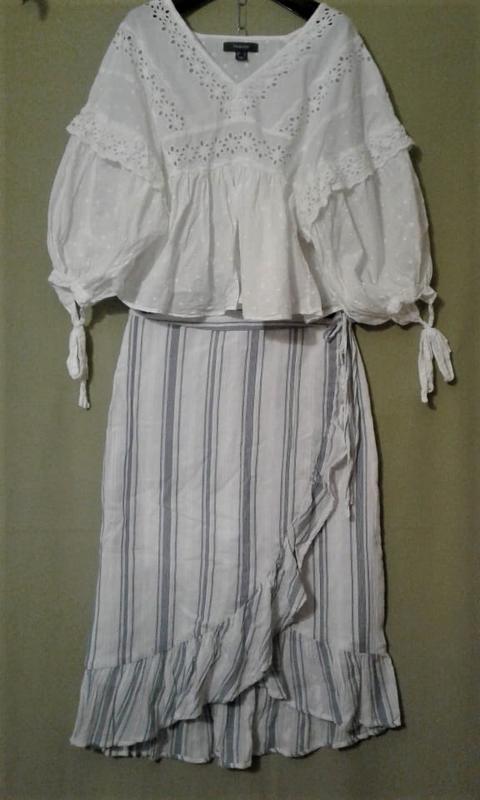 Юбка на запах Англия с воланом Длина -77 см. Пояс см. - 36 Хорошо на L.-40 Бедра см. - 49