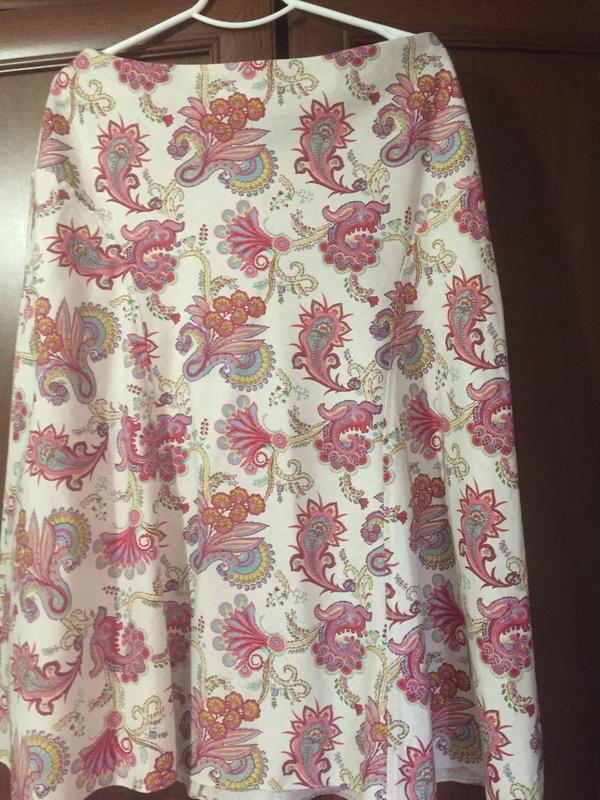 Яркая юбка миди Marks & Spencer оригинального кроя в трендовый принт. Размер указан 14. Состав полиэстер,вискоза,лен. Длина 77, пот 41, поб 59.