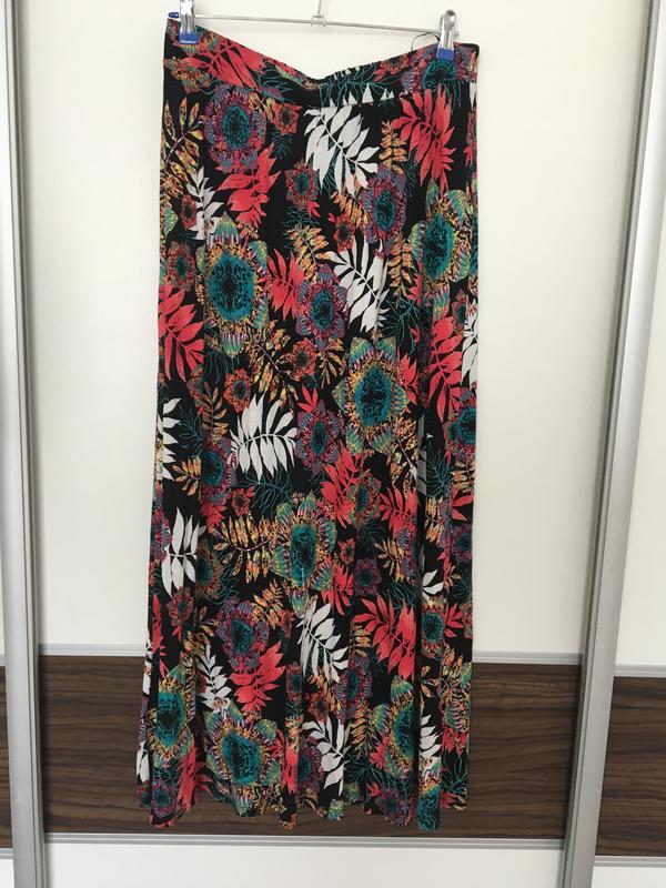 Комфортна спідниця з м’ягкої трикотажної тканини -100% віскоза, в ідеальному стані, талія ззаду на резинці, розмір вказано EUR 42 ,UK 14. Заміри: ПОТ 40 тягнеться до 54, довжина 100см.