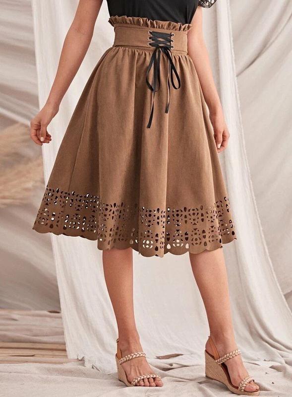 Очень интересная и красивая легкая юбочка,широкий пояс декорирован шнуровкой,Ткань приятная,легкая.Состояние отличное