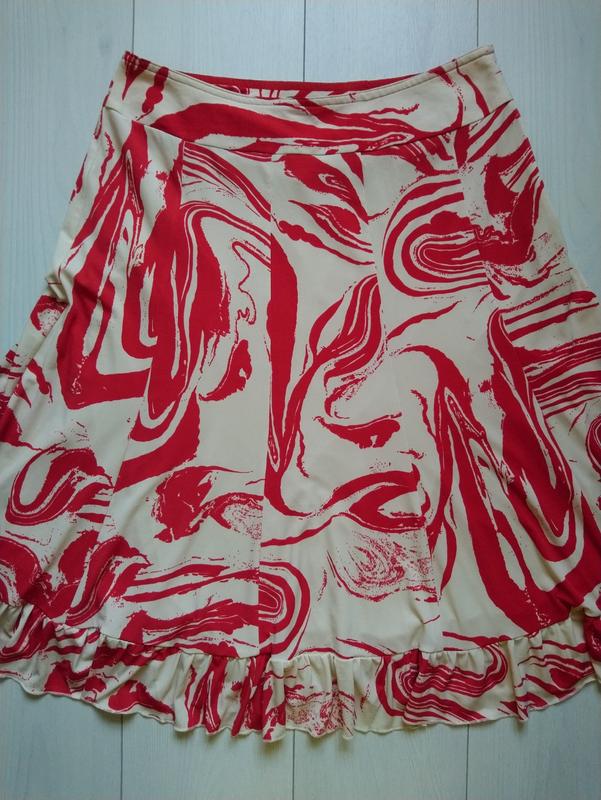 Спідниця в дуже хорошому стані З підкладкою Матеріал 95% поліестр і 5 спандекс Майже не мнеться З боку на замочку Розмір 16/42 Довжина 70 см Півобсяг пояса 40-41 см Півобсяг бедер 70 см і тягнеться