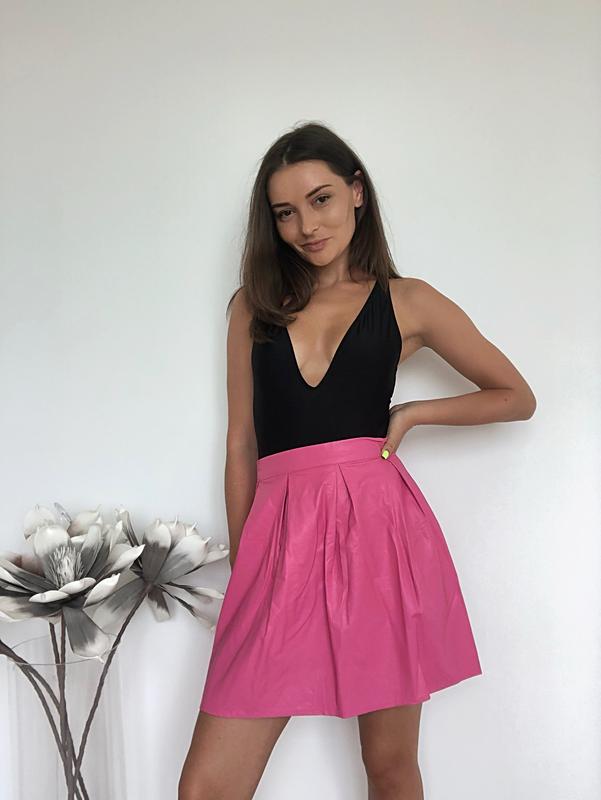Рожева спідниця з еко-шкіри