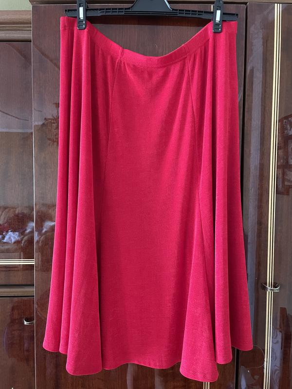 ПОТ 48 см, длина 72,5 см,ткань тянется,в поясе резинка.Красивый яркий цвет,фактурная ткань,красиво переливается на свету