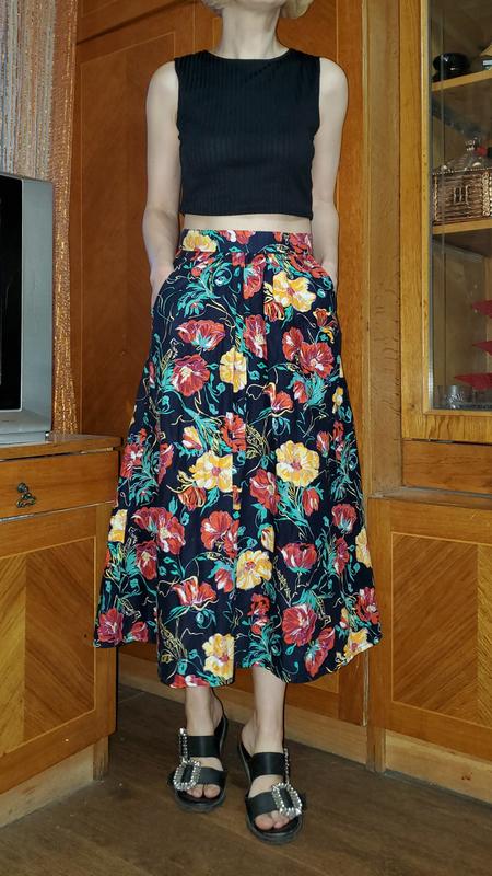 Шикарная юбка с карманами принт цветы, написан р. 12, маломерит, подойдёт на ХС-С, на талию 64+ На фото рост 160см 83-64-83. Состояние идеальное. Хлопок. Замеры по запросу. Возврат не предусмотрен.