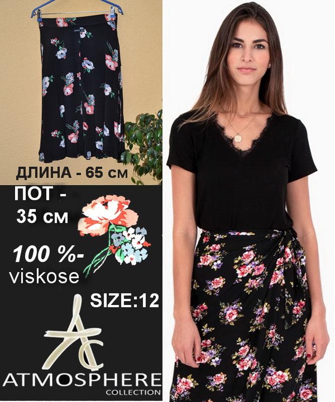 РОМАНТИЧНАЯ! ЛЕГКАЯ ВИСКОЗНАЯ в цветочный принт Юбка А-образного кроя от бренда – АТМOSPHERЕ. Она удачно обыгрывает любую фигуру, подходит абсолютно для любого повода❗ SIZE : 10/40. Cостав ткани: 100% - VISKOSE! ПАРАМЕТРЫ ЮБКИ, в лежачем спокойном состоянии: ПОТ - 35 см; ПОБ - СВОБОДНО до 60см; длина изделия- 65 см.