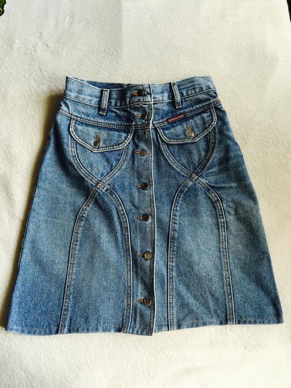 очень классная джинсовая юбка, трапеция, спереди на пуговицах. Длина-54см От-70см Об-95см Внизу 110см