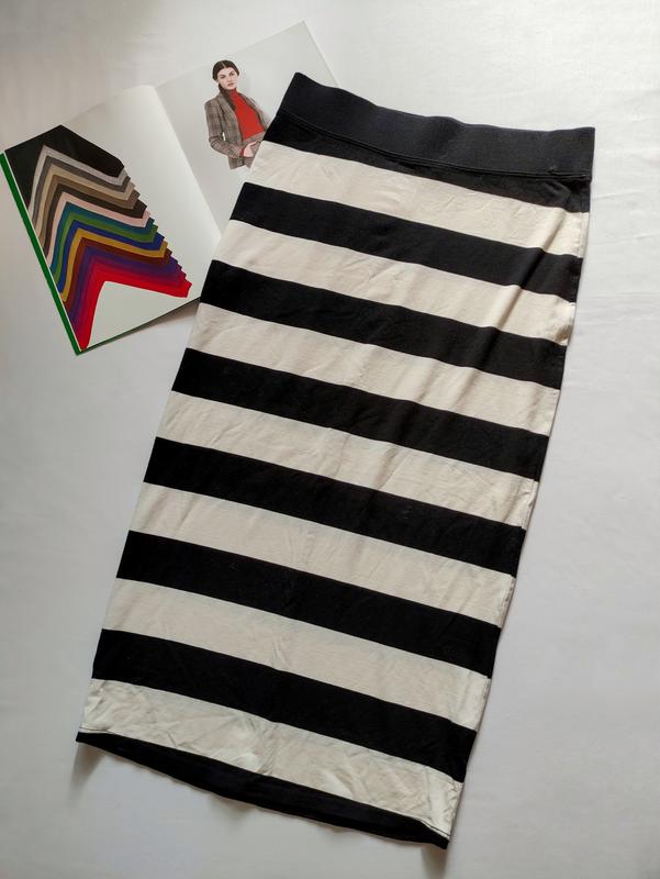 Юбка миди в черно-белую полоску прямого кроя Lindex. Универсальный фасон и цвет, который делает юбку актуальной для любого повода. ⠀ ▪Ширина в поясе: 39 см. ▪Длина: 92 см. ▪Размер: S. ▪Цвет: Черный, белый. ▪Материал: 95% вискоза, 5% эластан. ⠀ Цена: 150 грн.
