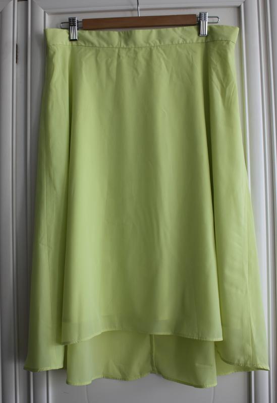Юбка на подкладке,цвет яркий, неоновый, сзади длиннее. Сзади молния. Пиот 42, ПОБ 55, длина перед 62, зад 72
