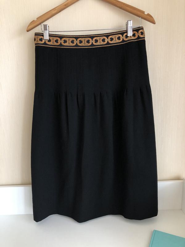 Спідниця Celine. Вишитий пояс . Фірмова підкладка . Розмір 42. Бирки зі складом немає. Стан ідеальний . Пояс 39 см, довжина 69 см, ширина по середині під поясом 44 див. В стегнах йде вільної ( ширина по підкладці 53 см ).