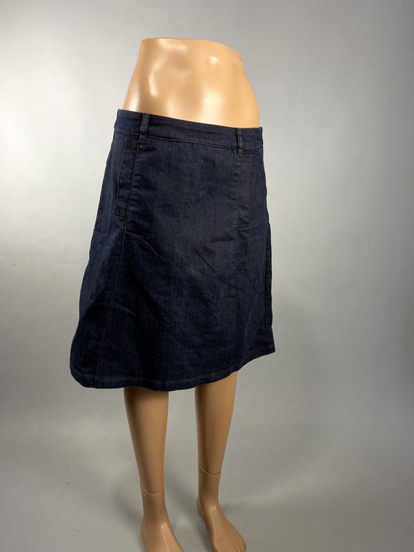 Юбка джинсовая миди KopAhi, т.синяя, Разм 40 (W28, M), Отл сост Качественная, стильная, фирменная юбка Размер: 40 (W28, M) Cостав: 60% cotton, 35% viscose, 5% elastane Замеры: пояс (см) - 38 полуохват бедер (см) -54 ширина снизу (см) - 64 длина (см) -38