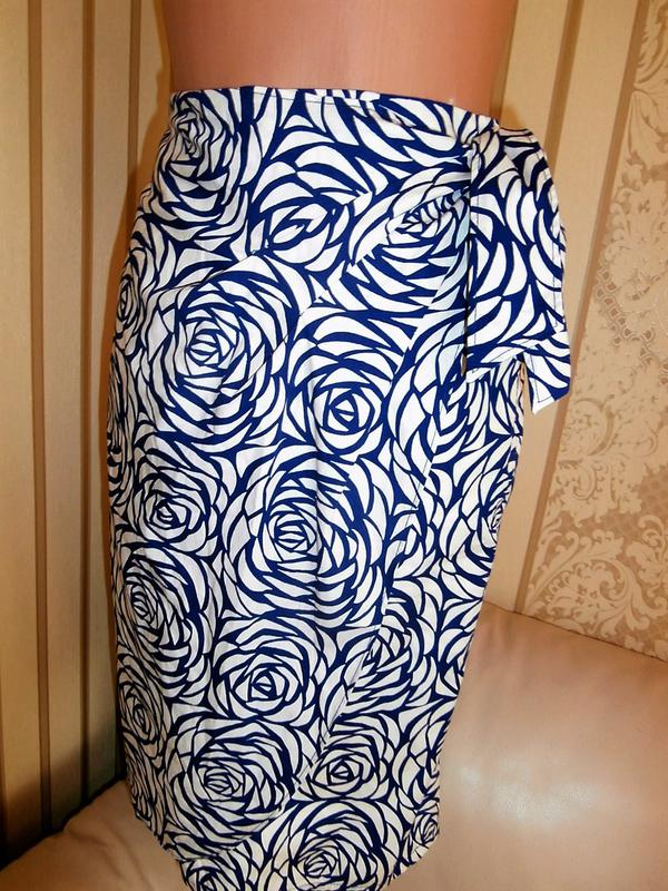 Класна юбочка, розм 6, підійде на наш 42-44, на підкладці, фасон ніби на запах, збоку завязується, тканина- коттон, стан ідеал