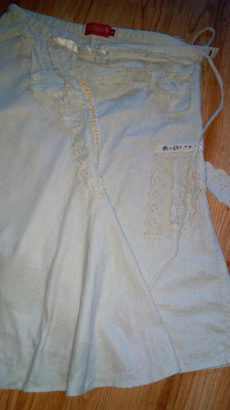Юбка в стиле БОХО, асимметрия, годе. Юбка украшена винтажным кружевом, батистовкой, льняными и велюровыми лентами. ПОТ-38 см., длина левая короткая -57 см., правая длинная-84 см. Цвет как на фото с биркой.