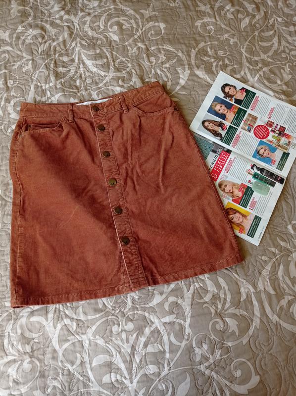 вельветовая юбка на пуговицах длина 49см пояс 38 см поб 47 см