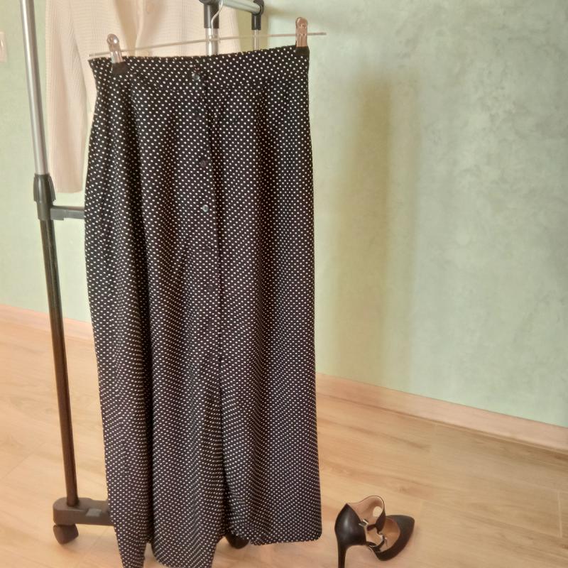 очень красиво смотрится на теле, материал прям играет при ходьбе, можно сделать разрез максимально удобный под вас, пуговицы это позволяют, размер с, длина изделия 90,талия 65,материал вискоза