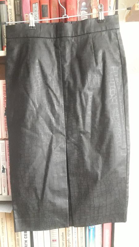 Состояние новой вещи. Впереди разрез, сзади застегивается на замочек и крючок. Без подклада. Замеры: длина 67,5, ОТ 36,5, ОБ почти 43, разрез 31. Указан 10 размер, но подойдет и на 8- смотря у кого какая фигура.