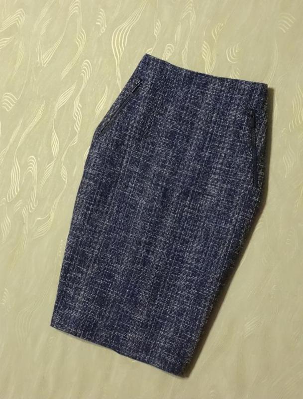 Спідниця олівець Marks&Spencer в ідеальному стані. Тканина щільна, склад: 75% бавовна, 17% акрил, 5% віскоза, 1% поліамід. Спідниця на підкладці, ззаду застібка блискавка, внизу шліца, попереду імітація кишень. Розмір написаний 12 , дивіться виміри ПІТ 41см ПОБІДИ 50-51см 59см довжина