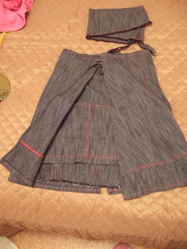 юбка+накидка на юбку (штаны) + воротничок H&M, ткань под джинс. Накидка до колен, на завязках