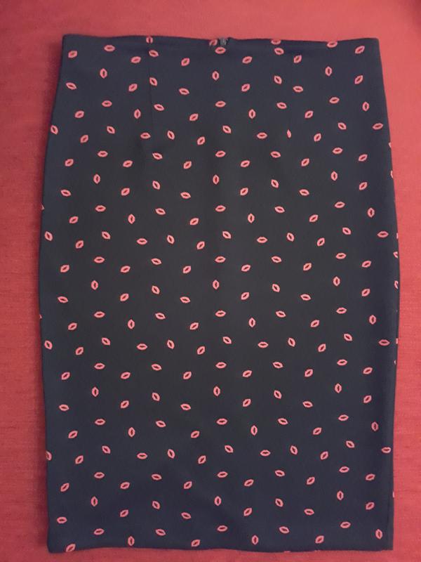 Эффектная юбка чёрного цвета с красными "поцелуйчиками".Состав:93% полиэстер,7%эластан.Made in Turkey.Замеры:ПОТ 44см,ПОБ 51 см.Длина 69 см.Застежка-небольшая скрытая молния.Разрез снизу 16 см.