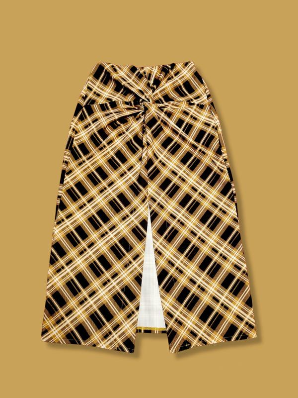 Юбка миди с разрезом спереди узел драпировка в клетку стрейч карандаш pull&bear