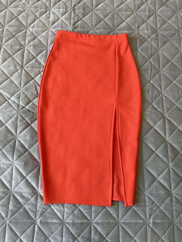 Обалденная юбка морковного цвета с вырезом сбоку. Размер XS. Состояние новой вещи.