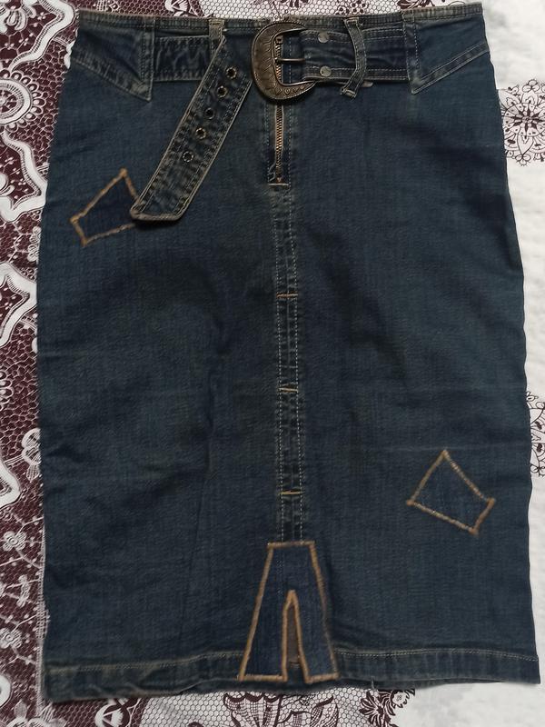 Юбка джинсовая, по колено, с железной бряшкой