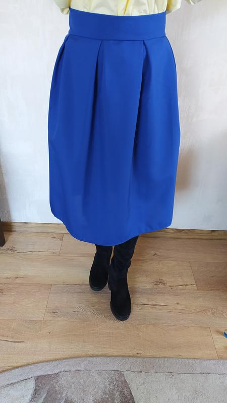 Юбка, длина миди, цвет электрик, ткань не тянется Размер L (обхват талии 74см, талия завышена, длина изделия 70см) Сзади на молнии