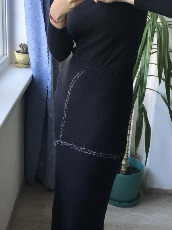 Полушерстяная темно-темно синяя (почти как 🖤) юбка с интересным минималистичным декором. По бокам разрезы. Размер L. В идеале. ПОТ - 39 см плюс резинка ПОБ - 51 см Длина - 88 см Длина разрезов - 24 см Ткань тянется