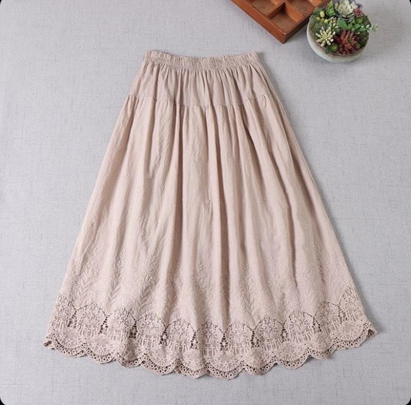 100% бавовна з ніжним мережевом Колір кава з молоком . Довжина 83. Талія на резинці тягнеться 36-38 розмір. З підкладкою. Може бути як самостійна спідничка і як спідня.
