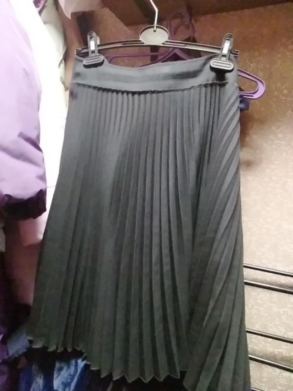 черная юбка в мелкую складку клеш . на рост 168 см до колен. слегка есть катышки. мало носилась.