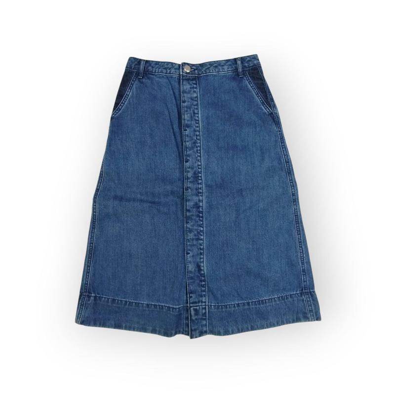 Женская джинсовая юбка миди синего цвета. Спереди по всей длине застежка на пуговицах. Состояние б/у, в идеальном состоянии Размер 44(S) Цвет синий Состав 100% хлопок Замеры: Длина 66 см Полуобхват талии 33 см Полуобхват бедер 49 см