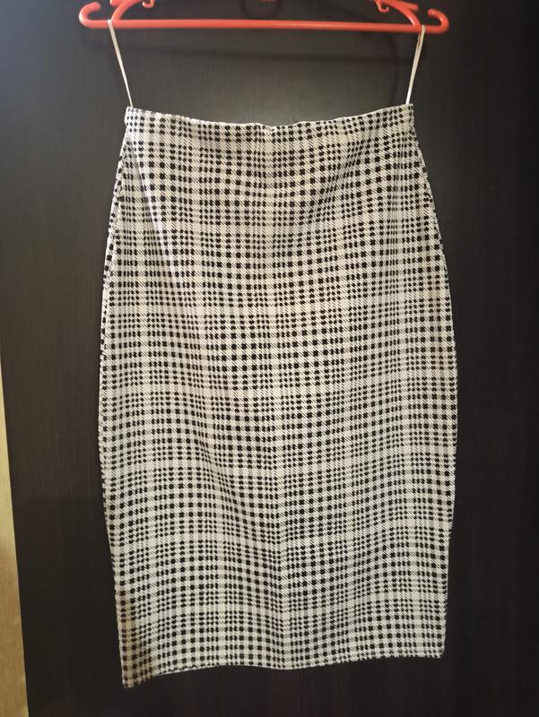 Юбка-карандаш, принт гусиная лапка, на поясе резинка, ткань тянется. Размер 10.