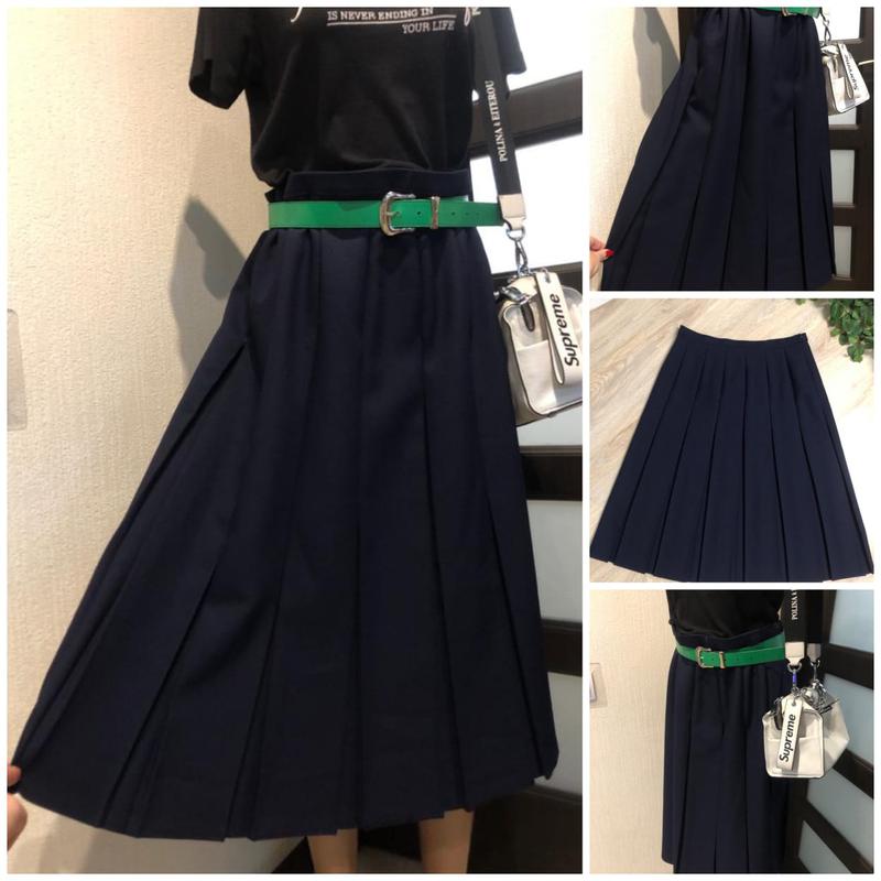 новая но без ценника в отличном состоянии без дефектов и изъянов хорошо сидит по фигуре станет незаменимой вещью в Вашем гардеробе очень качественная ткань и отделка ткань гладкая плотная хорошо держит форму складок, цвет насыщенный темно-синий хорошо виден на всех фото,в приближении засвечивает но видна фактура ткани модель юбочки без подкладки без карманов застёжка молния сбоку в поясе резинки нет длина ниже колена кому подойдёт не пожалеете прослужит Вам долгие годы хорошо сочетается с любыми вещами и аксессуарами фото на теле нет состав и брэнд смотрите на бирке размер заявлен 42 L но в любом случае смотрите сами по замерам кому как сядет и нравится ремешок в комплект не входит! длина изделия 74 поб 56 пот 40/41 ткань не тянется! очень качественная и крутая вещь! замеры точные проверяйте внимательно!