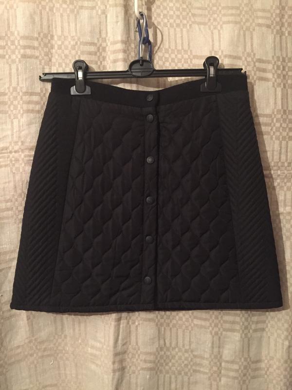 Теплая болоньевая черная стеганая юбка на кнопках Пот-37,поб-48,длина-45см