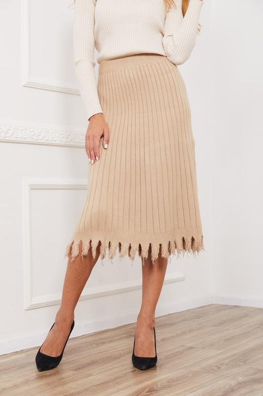 Плиссированная юбка – это органичное сочетание классического бежевого оттенка со свободным, слегка романтичным фасоном и длиной чуть ниже колена. Иммитация равного края делает эту модель интереснее, но она уместна как в офисе, так и на прогулке или встрече в ресторане.