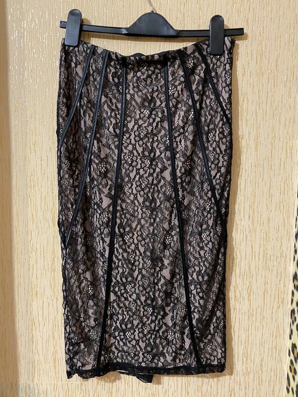 Спідниця олівець розміром 44-46-48 ( на об'єм стегон до 100см). Зверху гіпюр, під ним тілесна підкладка. Зліва потайна блискавка, що дуже зручно. Нова але без бірки
