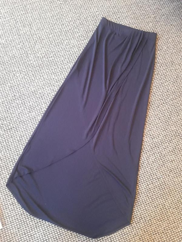 класна трендова спідничка на переклад темно синього кольору в ідеальному стані,пот 30+,резинка,поб 39,довжина 84/105