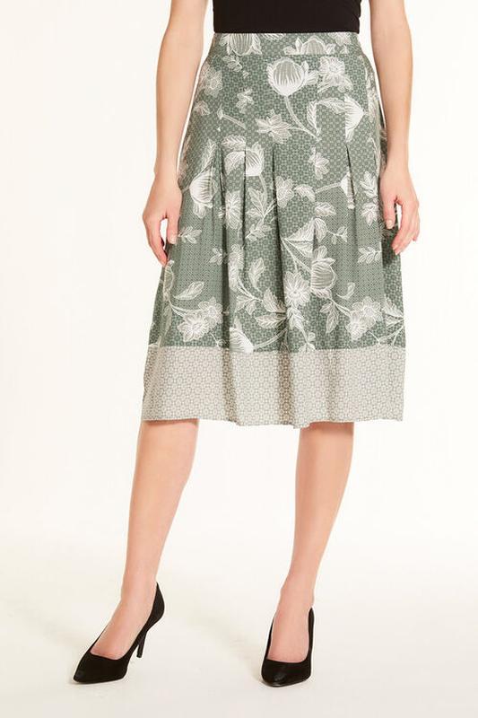 Очень красивая юбка с цветочным принтом на пышные формы Bonmarche. Размер UK 24. Замеры: ширина в поясе 52-64 см, ПОБ 77 см, длина 68 см. Состав: 100% вискоза.