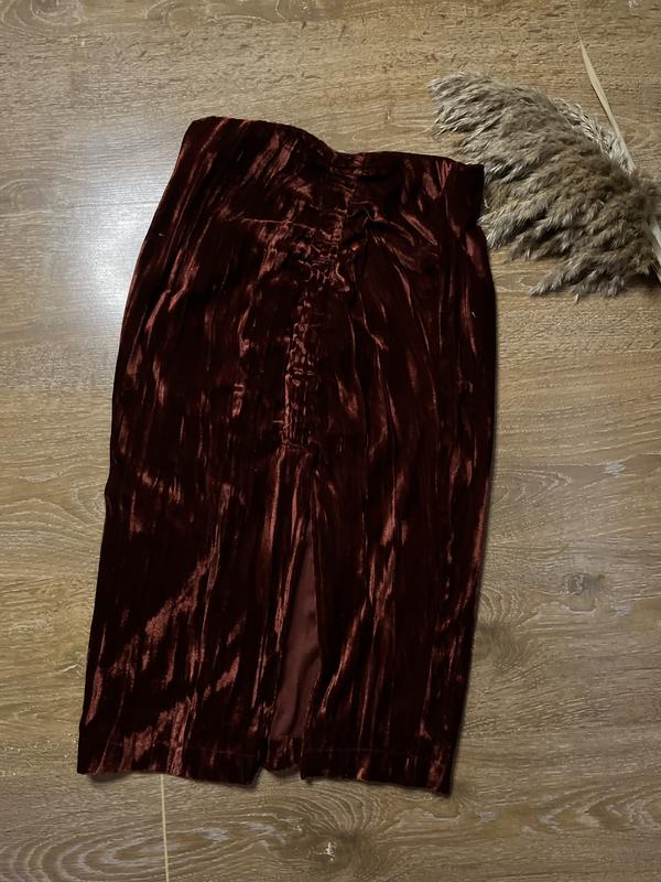 Спідниця міді велюрова, дуже гарно підкреслює фігуру Заміри по виробу (напів обхват) Талія: 30 см (гумка) Стегна: 42 см Довжина: 68 см Склад: Ідеально підійде на XS, S Оплата: shafa оплата, безготівковий на карту чи по мінімальній передоплаті Завжди буду рада допомогти підібрати з розміром. Підписуйтесь на оновленя ❤️