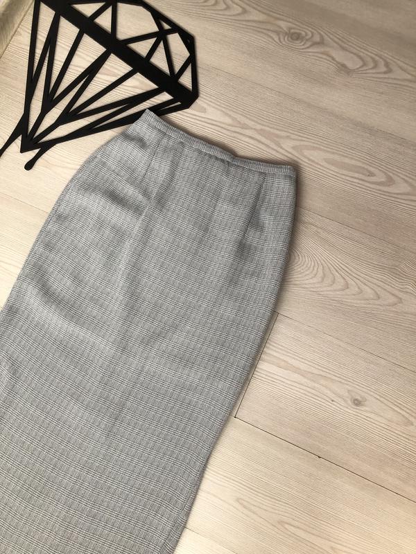 Стильная юбка миди в клетку, очень актуальный принт и цвет, ровного кроя , высочайшая посадка , Сзади разрез. Состояние идеальное! Замеры П.о.т-30,5 П.о.б-47 Длина-85 Разрез-34
