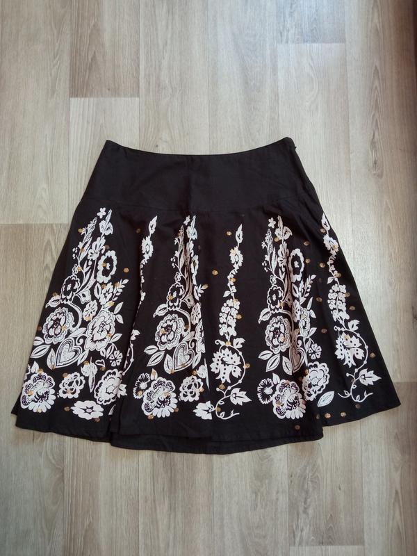 коричневая с бежевым принтом, с блестками, юбочка на лето, тоненький хлопок, сбоку молния, не тянется длина 55см, пояс 40см, stegna 48см, дальше свободно 📢 Поклонные покупатели, в связи с поднятием экспертов за продажу вещей минимальное заказ от 100грн. Заказ можно оформить через сайт, сложив выбранные товары в корзину.