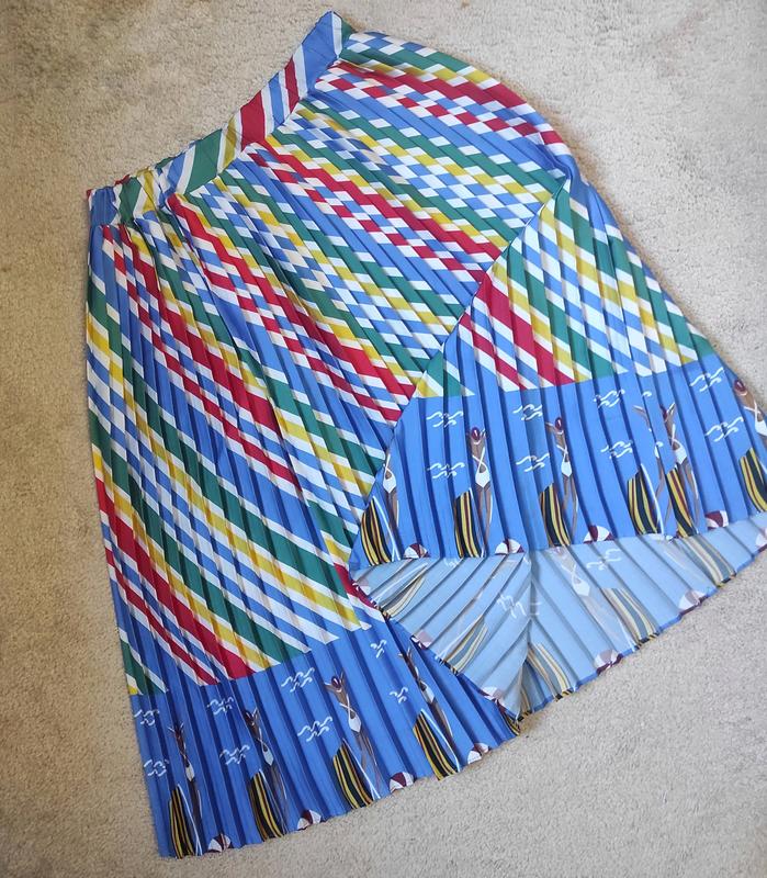 Яскрава плесірована літня спідниця, легка атласна тканина, напівоб'єм резинки 36 см, довжина з резинкою 70 см