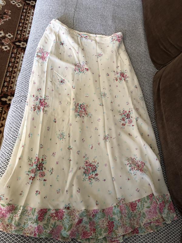 Нежная юбка сливочного цвета с акварельным цветочным принтом. На подкладке, пояс на резинке.Размер указан 42 европейский, британский 14. Состояние идеал . Юбка вискоза, подкладка полиэстер