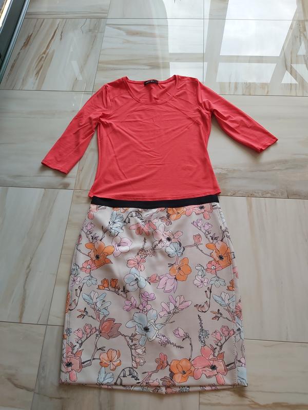 Marc Cain – известный немецкий бренд, премиум сегмента. Созданный он для уверенных, интересных и открытых женщин, которые живут тут и сейчас, выражая себя через то, что они носят. Вещь из каждой коллекции гармонично сочетает в себе эстетику, искусство, непринужденность, отменное качество и высокий комфорт в носке. Шикарная трикотажная юбка карандаш,со шлицой серая в цветы. на подкладе. состояние новой без бирок. Пот-42(тянется) Поб-52(тянется) Длина-54 юбка 500грн Блуза лонгслив коррал Поп-39 Пог-46(тянется) Пот-42 Длина-58 Длина рукава-42 от плеча(три четверти) блуза 350 Состояние юбки блузы новое, без бирок.