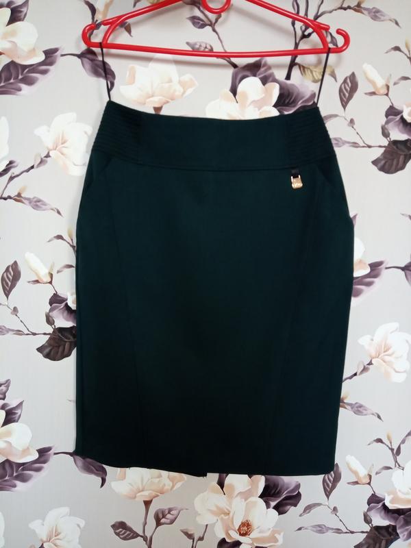 Спідниця смарагдового кольору Довжина 54 ПОТ 35 ПОС 46 Тканина трохи тягнеться Ззаду розріз 20 см Є кармани