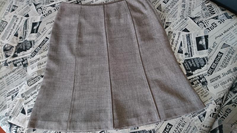 Очень красивая бежево-коричневая юбка-трапеция H&M Henes. Состояние новой вещи. Одевала один раз. Размер на бирке 14, вполне подойдёт и на 12. Замеры : Пот 38 см, Поб 50 см, Длина 53 см.