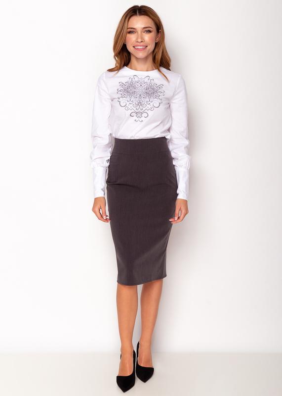 Джинсова темно сіра еластична спідниця олівець з розрізом міді