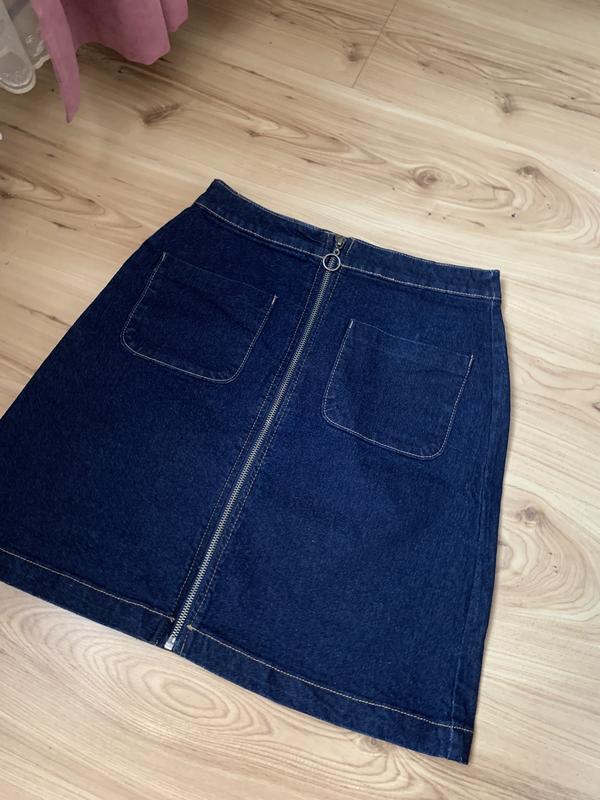 Прикольна джинсова міні спідниця з карманами зпереду та замком. Розмір 8 (С) але підійде на невелику М